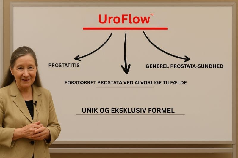 Dr. Mette Madsen: “Den hedder UroFlow™, og den er baseret på min unikke formel en nøje afbalanceret sammensætning af naturlige ingredienser, som understøtter kroppens egen evne til at reducere betændelse. Det, der adskiller UroFlow™ fra andre løsninger, er, at den ikke blot skjuler symptomerne, men hjælper med at reparere den underliggende belastning og genoprette en sund prostatafunktion.